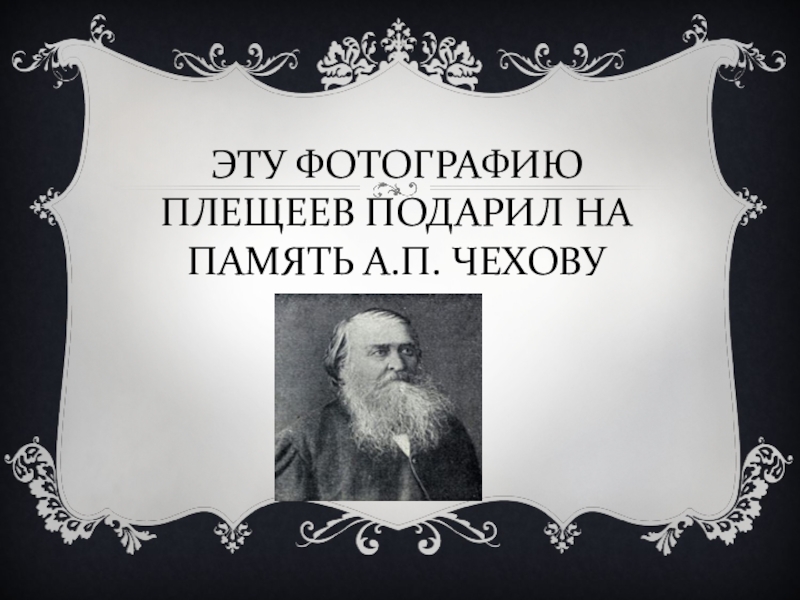 Слайд 12ЭТУ ФОТОГРАФИЮ ПЛЕЩЕЕВ ПОДАРИЛ НА ПАМЯТЬ А.П. ЧЕХОВУ