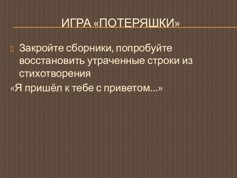 Закройте сборники, попробуйте восстановить утраченные строки из стихотворения