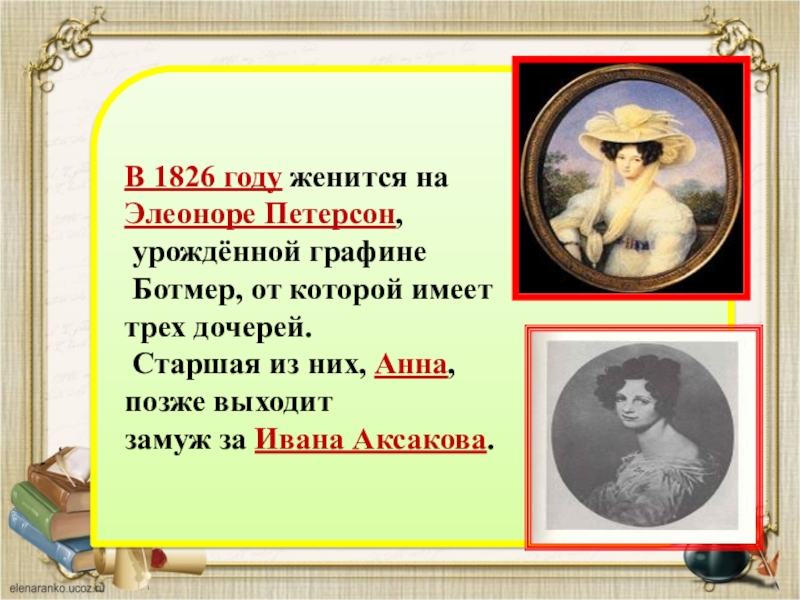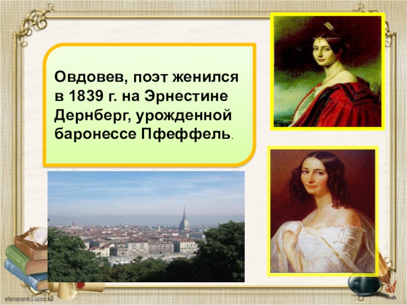 Слайд 11Овдовев, поэт женился в 1839 г. на Эрнестине Дернберг, урожденной баронессе