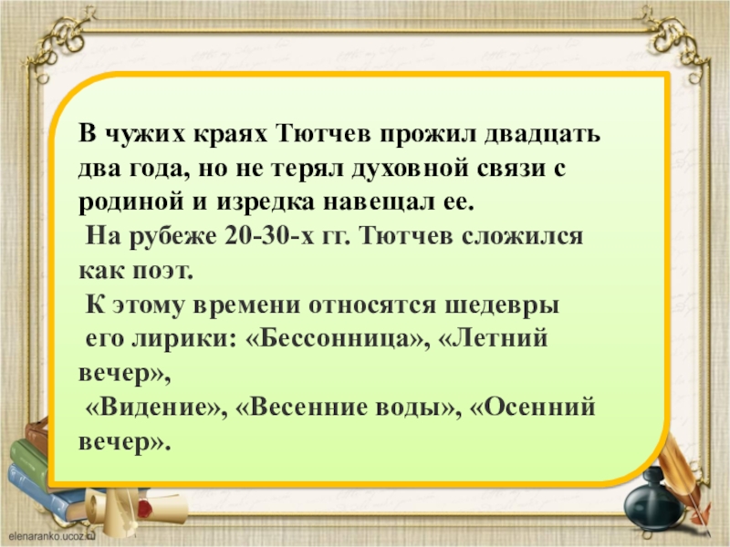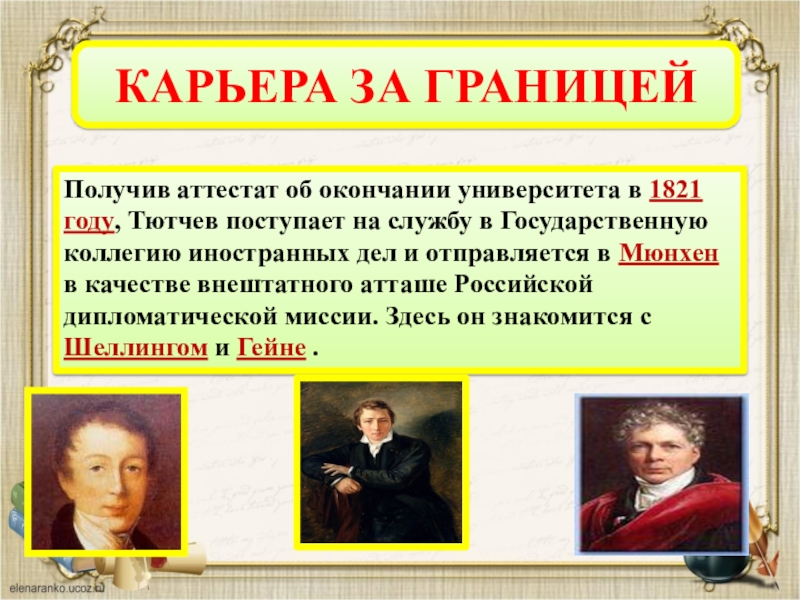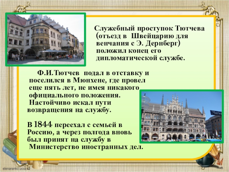 Слайд 8Мюнхенский период – пора светских успехов и сердечных мечтаний Тютчева.