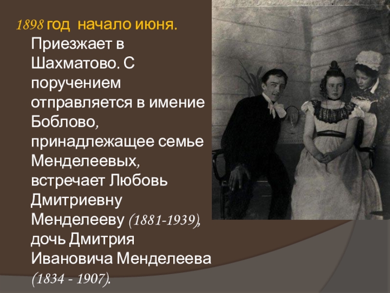 Слайд 151898 год начало июня. Приезжает в Шахматово. С поручением отправляется в
