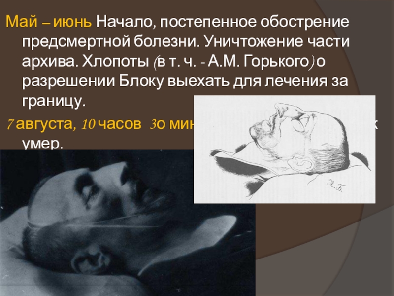 Слайд 54Май – июнь Начало, постепенное обострение предсмертной болезни. Уничтожение части архива.