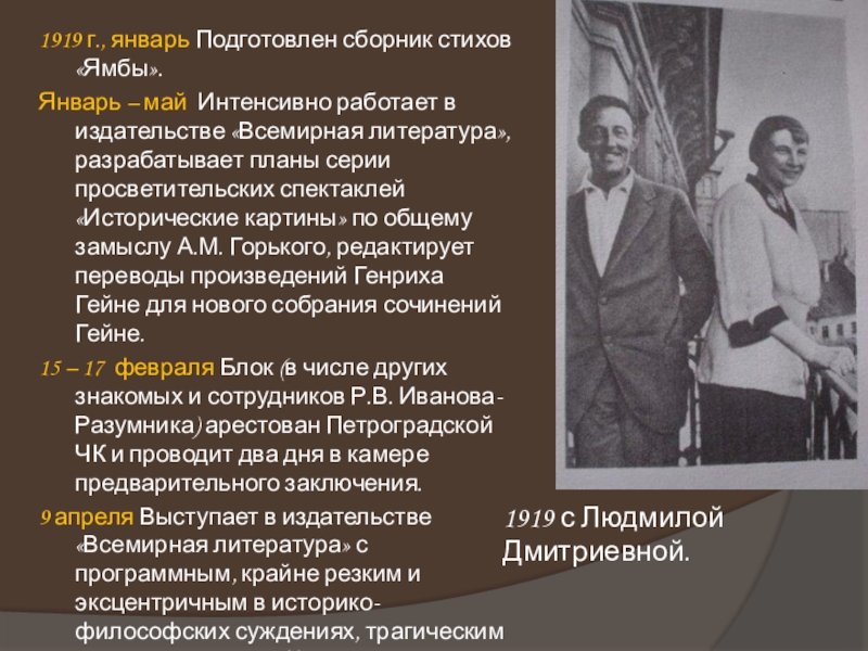 Слайд 511919 г., январь Подготовлен сборник стихов «Ямбы».