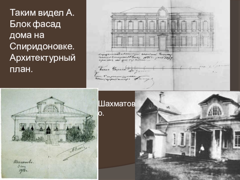 Слайд 39Таким видел А.Блок фасад дома на Спиридоновке. Архитектурный план.