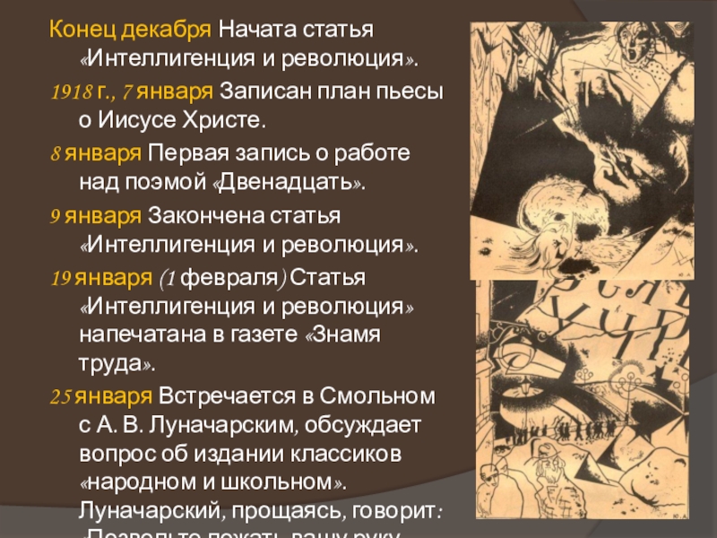8 января Первая запись о работе над поэмой «Двенадцать».