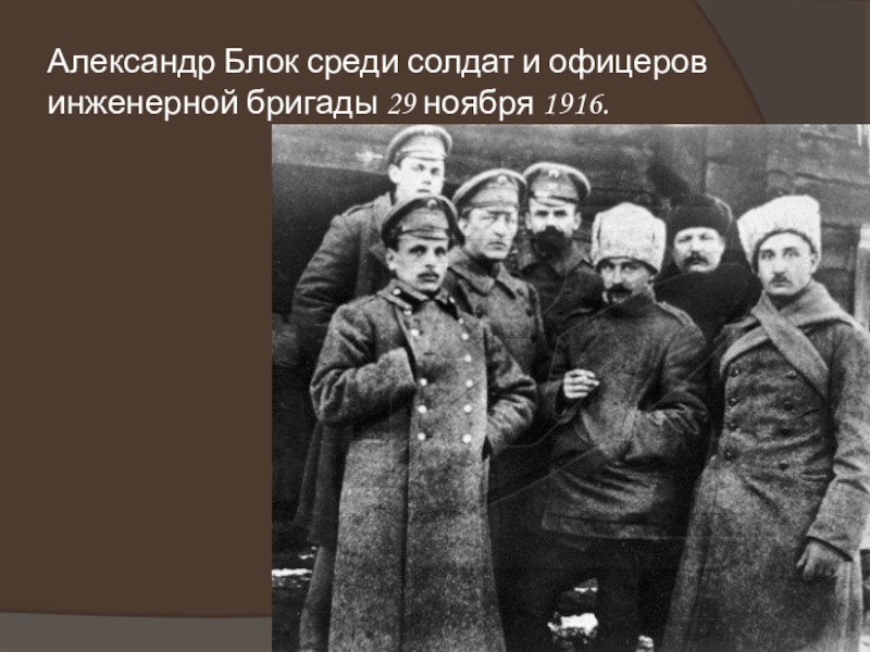 Слайд 48Александр Блок среди солдат и офицеров инженерной бригады 29 ноября 1916.