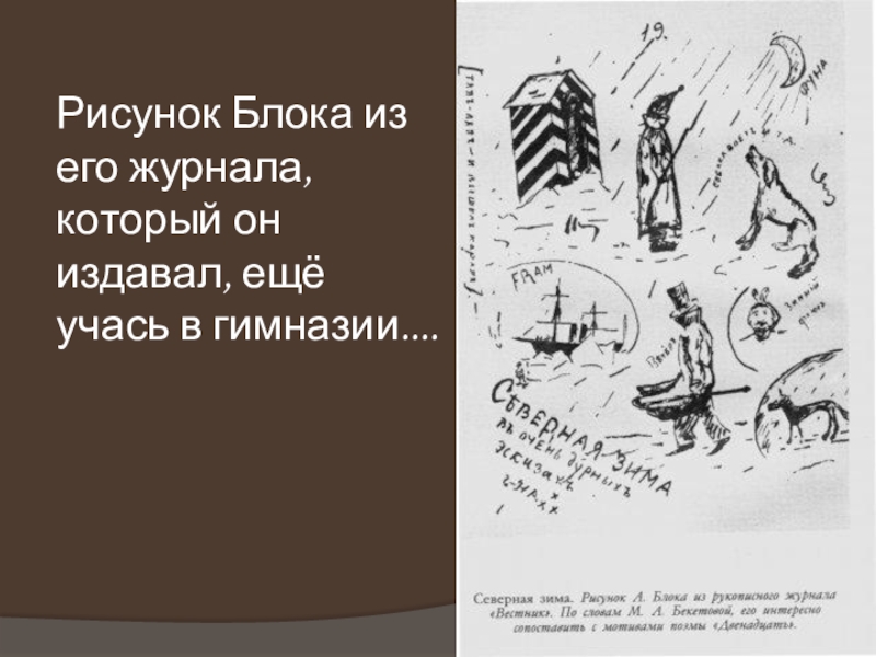 Слайд 10Рисунок Блока из его журнала, который он издавал, ещё учась в