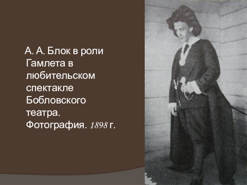 Слайд 17 А. А. Блок в роли Гамлета в любительском спектакле