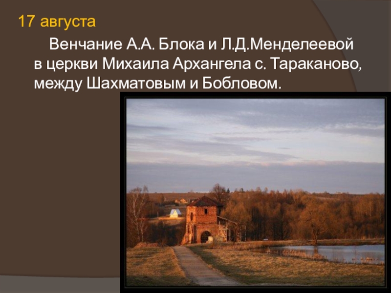 Венчание А.А. Блока и Л.Д.Менделеевой в