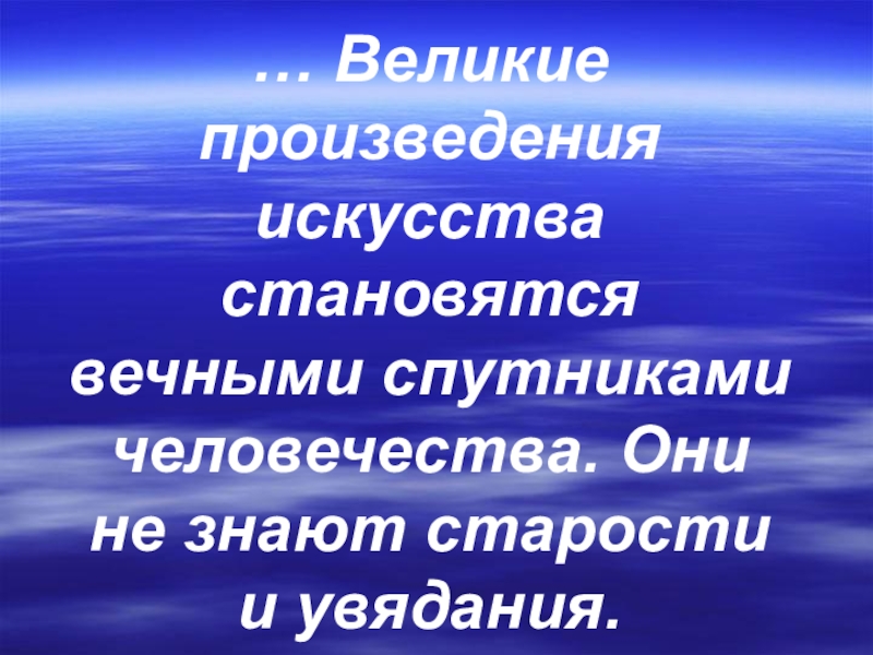 Слайд 36… Великие произведения искусства становятся вечными спутниками человечества. Они не знают