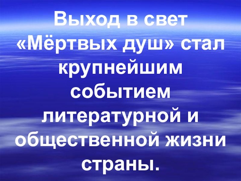 Слайд 33Выход в свет «Мёртвых душ» стал крупнейшим событием литературной и общественной