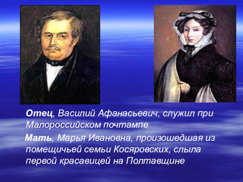 Слайд 6 Отец, Василий Афанасьевич, служил при Малороссийском почтампе