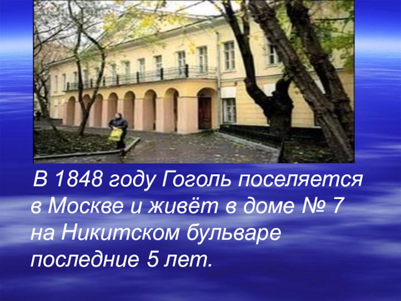 Слайд 37 В 1848 году Гоголь поселяется в Москве и живёт