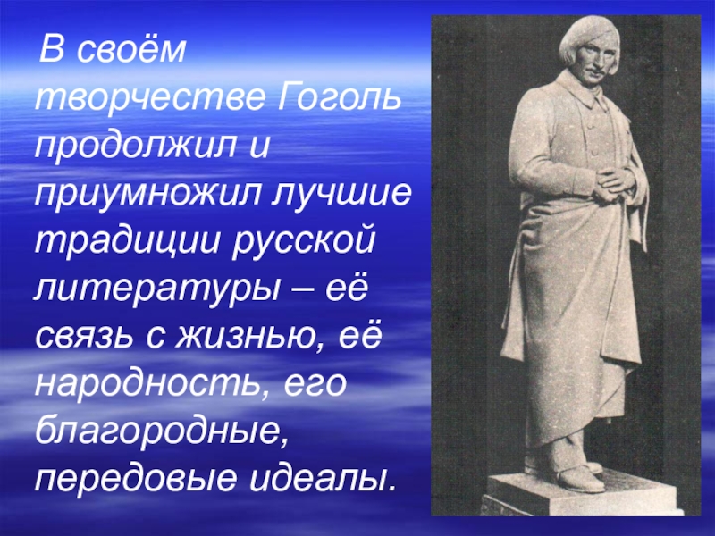 Слайд 41 В своём творчестве Гоголь продолжил и приумножил лучшие традиции