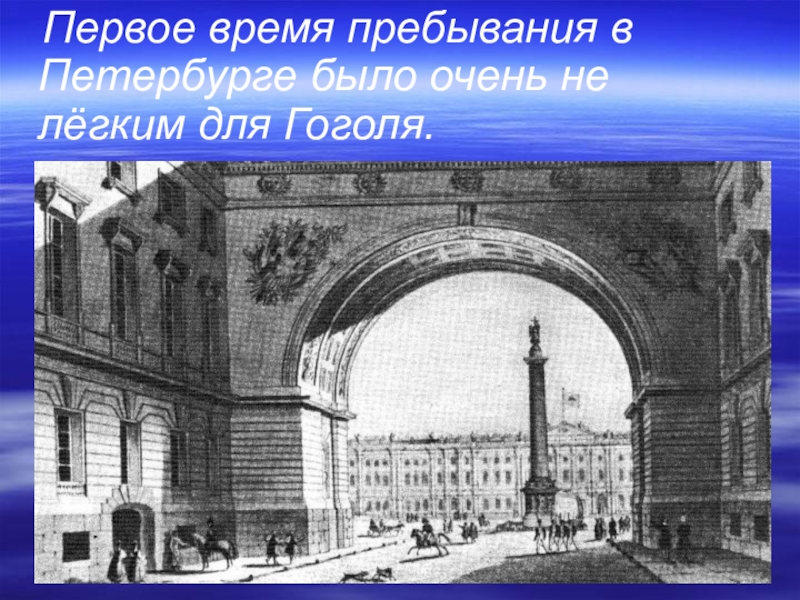 Слайд 10 Первое время пребывания в Петербурге было очень не лёгким