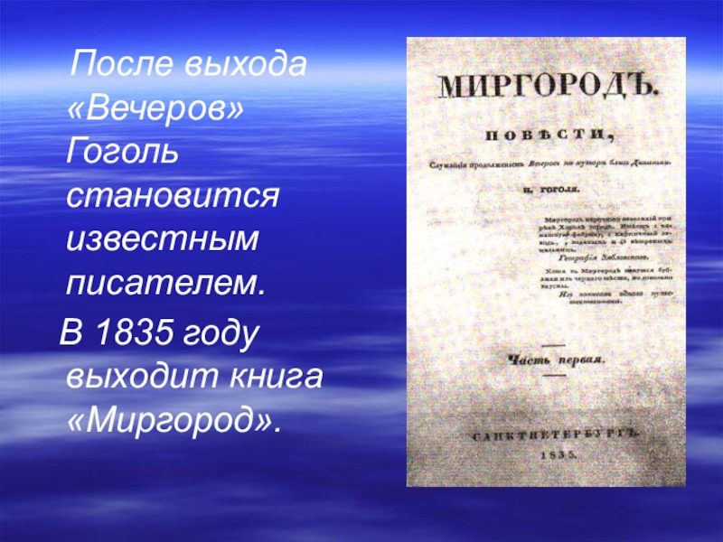 Слайд 15 В начале 1835 года, почти одновременно со сборником «Миргород»,