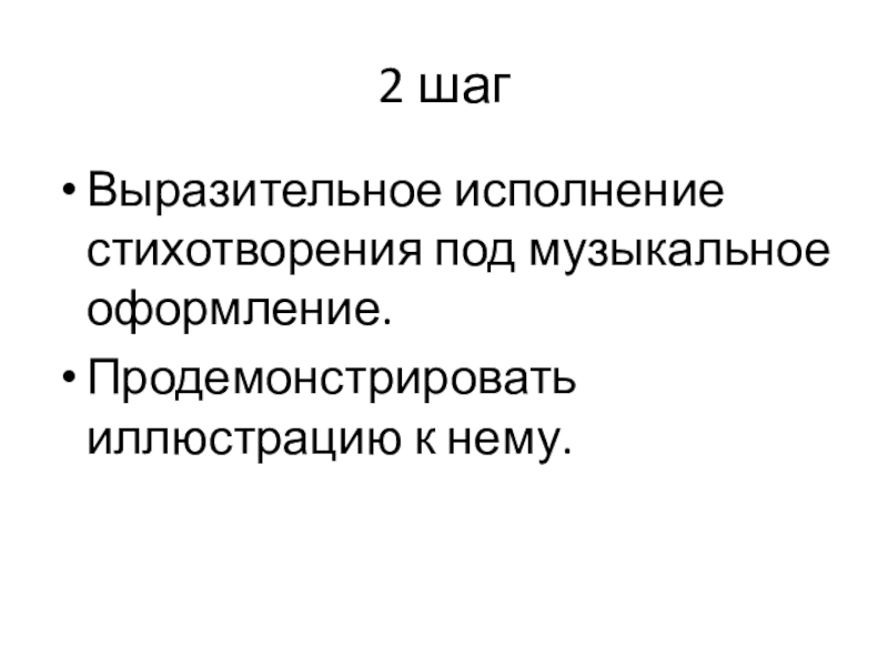 2 шагВыразительное исполнение стихотворения под музыкальное оформление.Продемонстрировать иллюстрацию к нему.