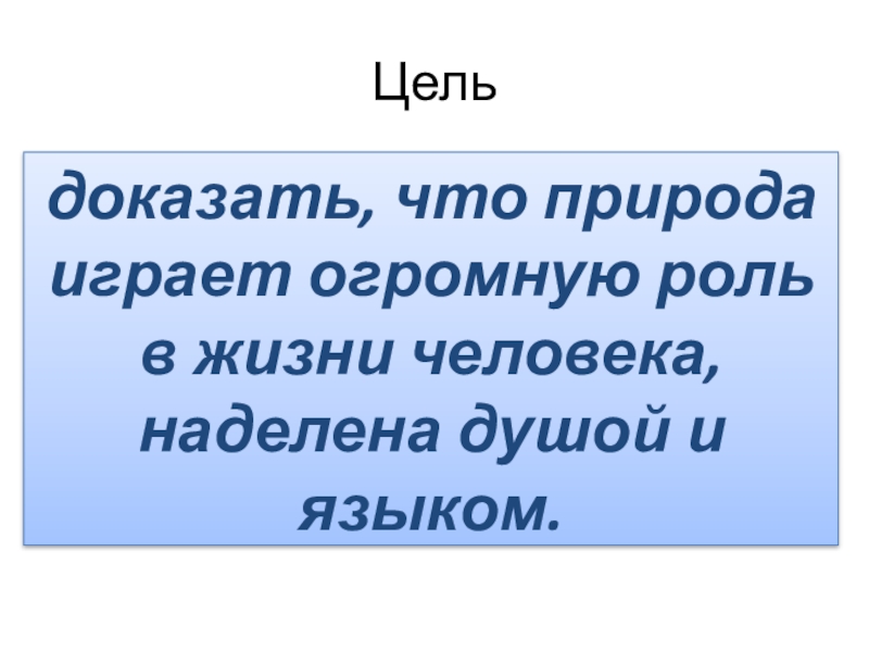 Цельдоказать, что природа играет огромную роль в жизни человека, наделена душой и языком.
