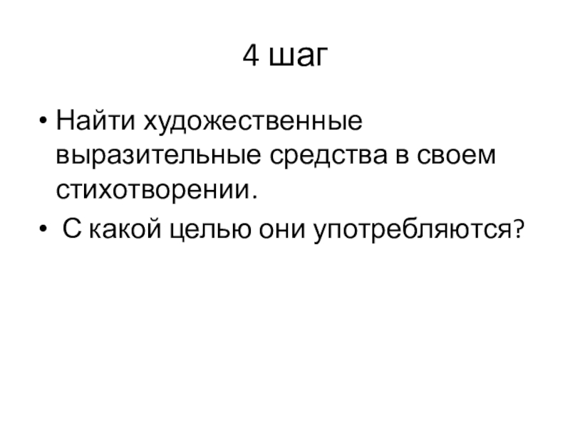 4 шагНайти художественные выразительные средства в своем стихотворении. С какой целью они употребляются?