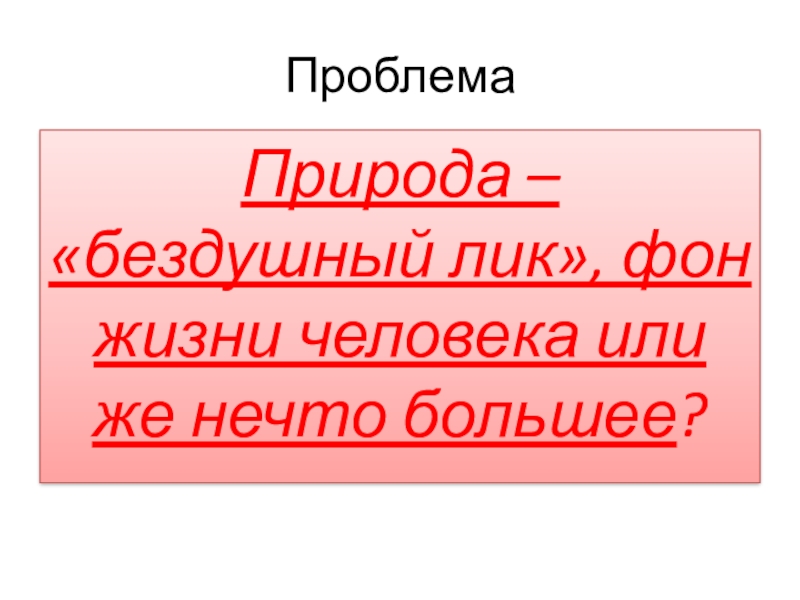 ПроблемаПрирода – «бездушный лик», фон жизни человека или же нечто большее?