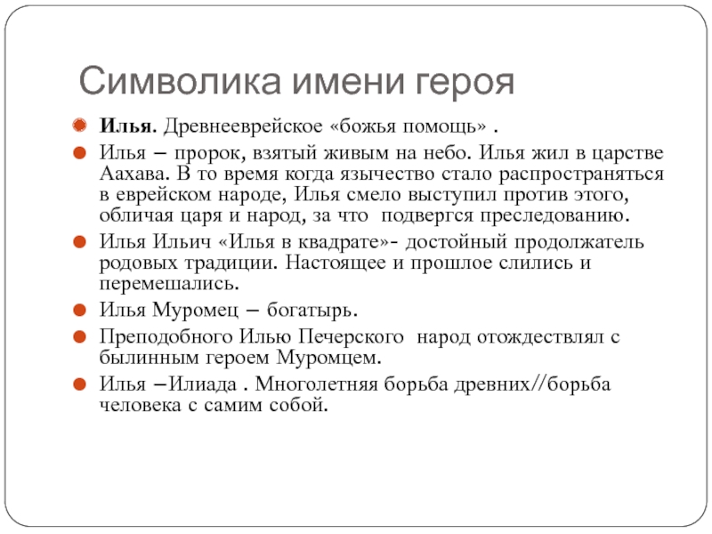 Илья –Илиада . Многолетняя борьба древних//борьба человека с самим собой.