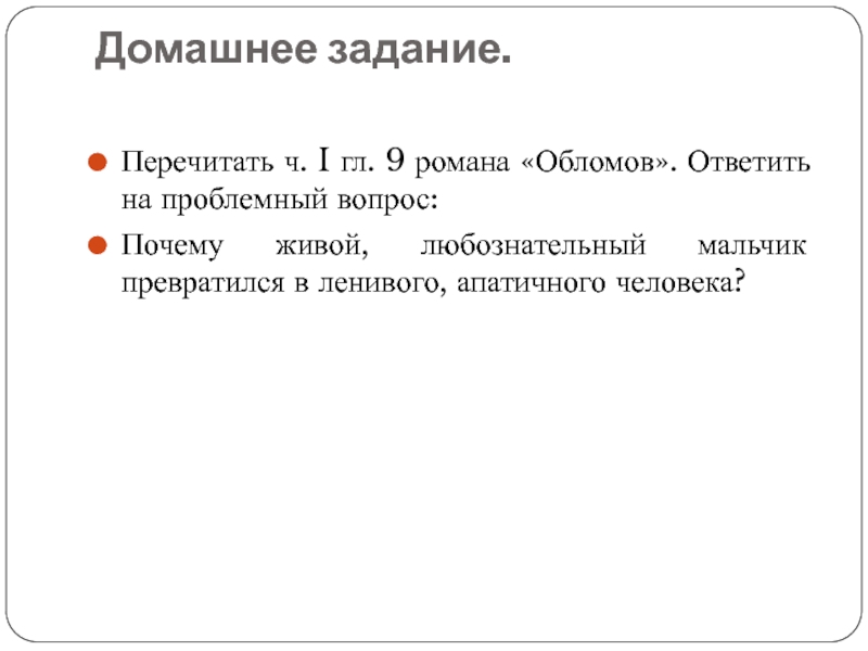 Перечитать ч. I гл. 9 романа «Обломов». Ответить на