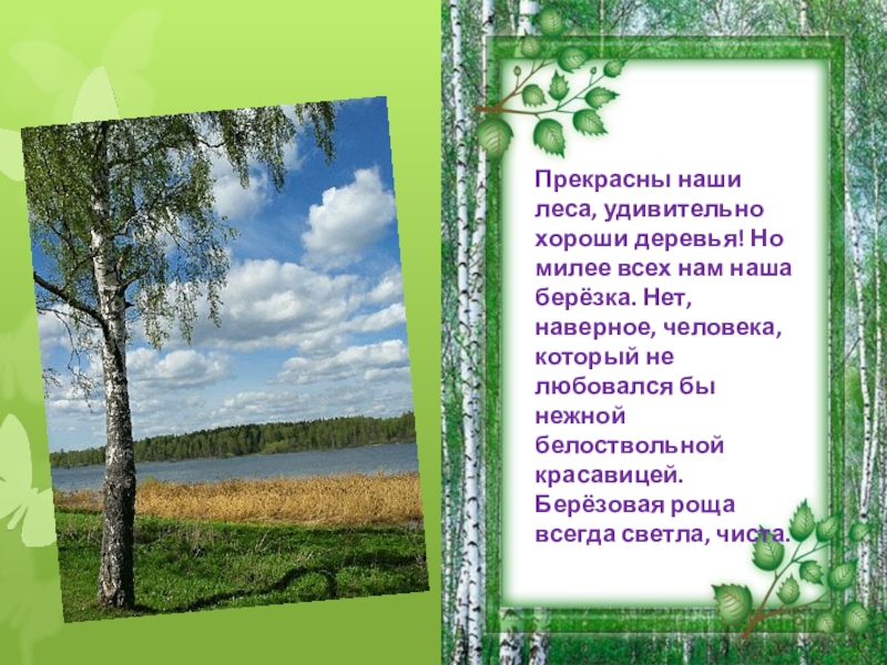 Слайд 3Прекрасны наши леса, удивительно хороши деревья! Но милее всех нам наша