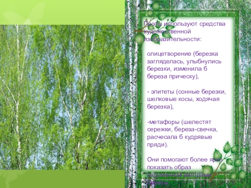 Они помогают более ярко показать образ задуманной авторами березы.