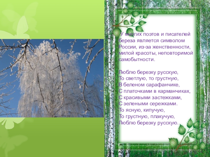 У многих поэтов и писателей береза является символом России, из-за