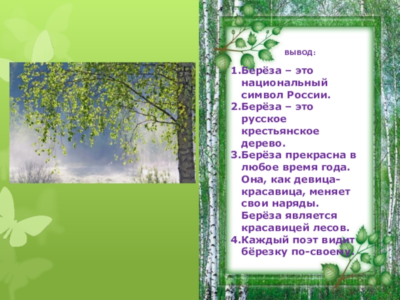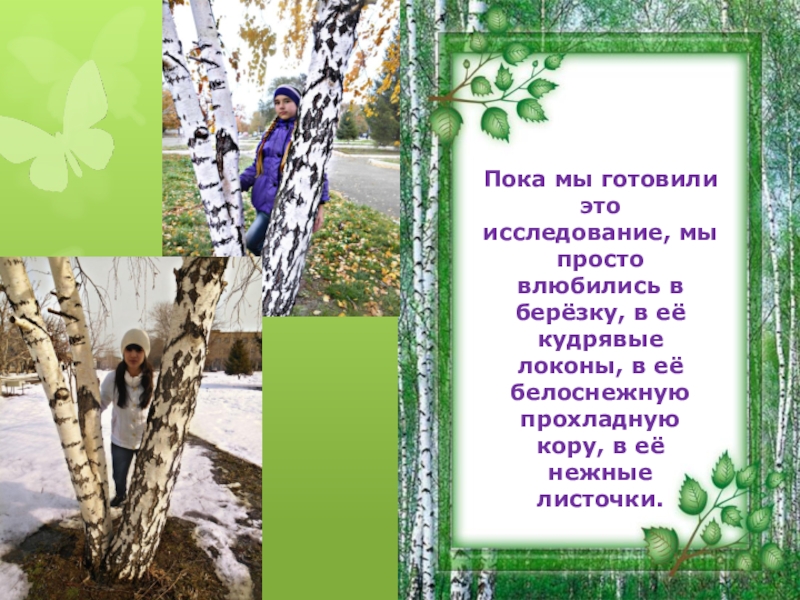 Слайд 19Пока мы готовили это исследование, мы просто влюбились в берёзку, в