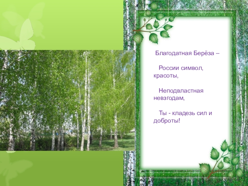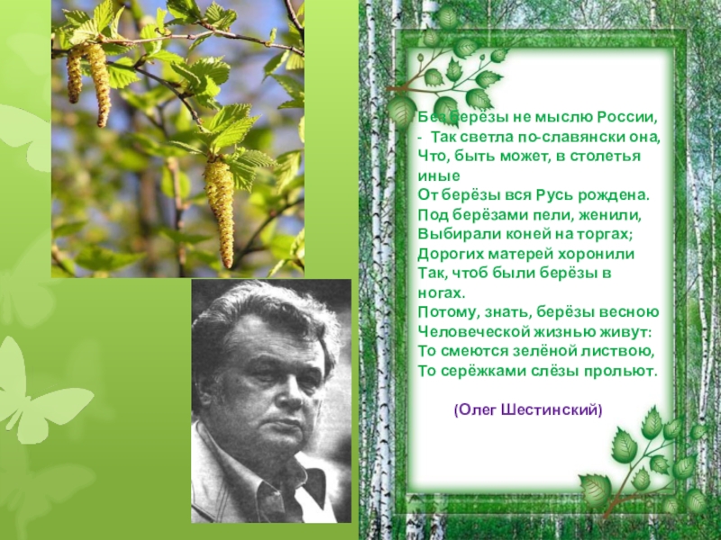 Слайд 10Без берёзы не мыслю России, - Так светла по-славянски она,