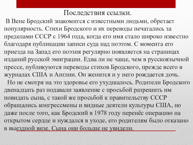 Ссылка Бродского. Перемены в судьбе.