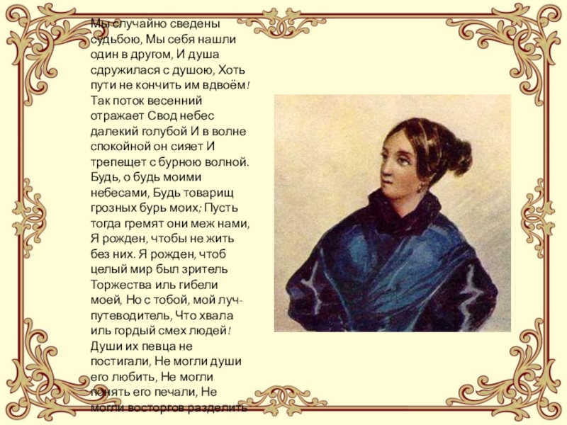 Слайд 23Мы случайно сведены судьбою, Мы себя нашли один в другом, И