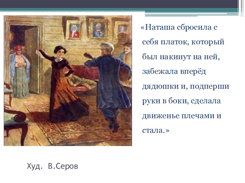 Худ. В.Серов  «Наташа сбросила с себя платок, который был накинут на ней, забежала