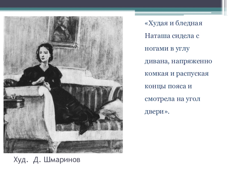 Худ. Д. Шмаринов    «Худая и бледная Наташа сидела с ногами в углу дивана, напряженно