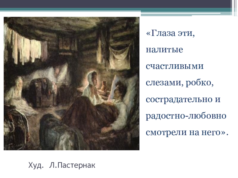 Худ. Л.Пастернак  «Глаза эти, налитые счастливыми слезами, робко, сострадательно и радостно-любовно смотрели на