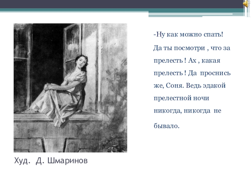 Худ. Д. Шмаринов   -Ну как можно спать!  Да ты посмотри , что за прелесть