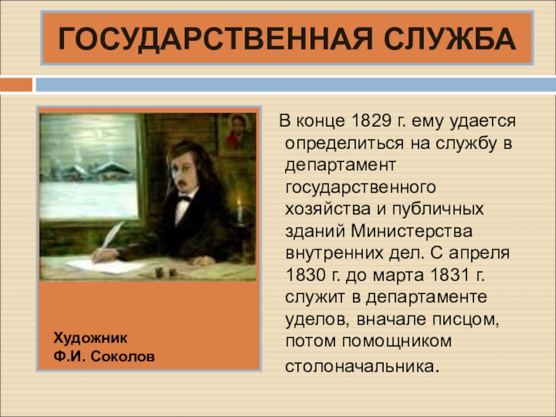 Осенью 1835 г. Гоголь принимается за написание "Ревизора", сюжет которого подсказан был Пушкиным.