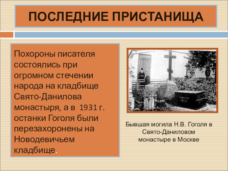 Бывшая могила Н.В. Гоголя в Свято-Даниловом