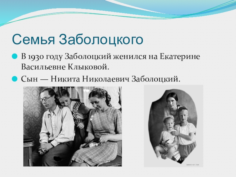 В 1930 году Заболоцкий женился на Екатерине Васильевне Клыковой.