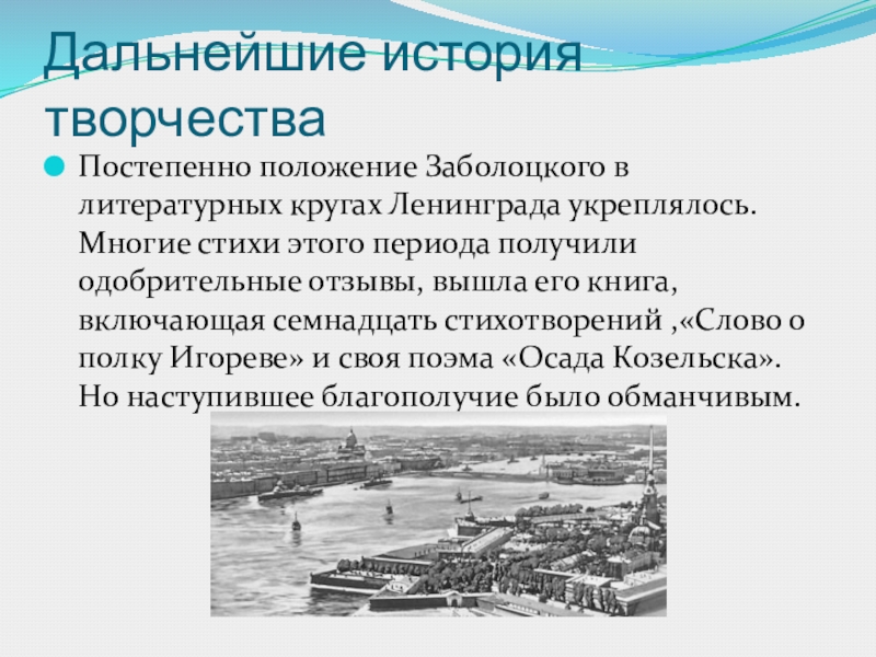 Постепенно положение Заболоцкого в литературных кругах Ленинграда укреплялось.