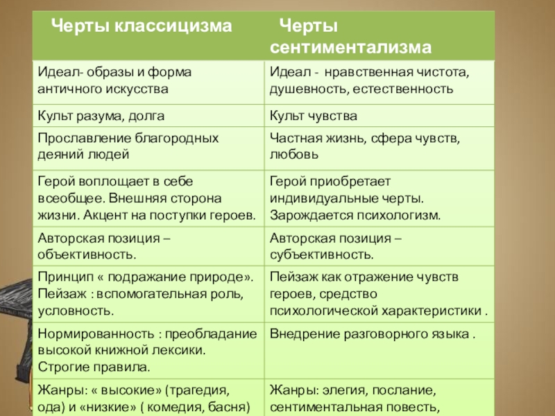 сравнить сентиментализм и классицизм в русской литературе 18 века.