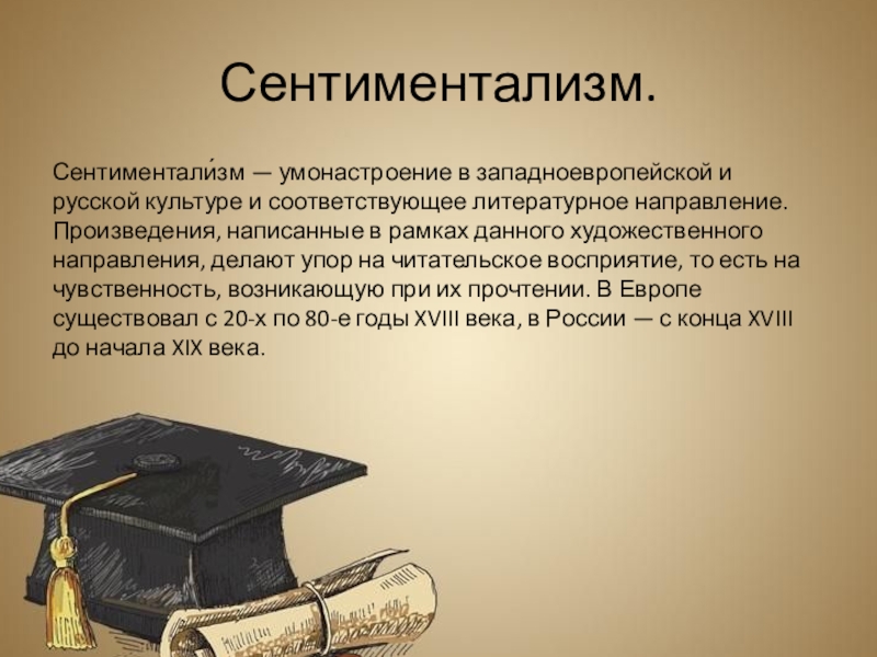 направление. Произведения, написанные в рамках данного художественного направления, делают упор на читательское восприятие, то есть на чувственность, возникающую при их прочтении. В Европе существовал с 20-х по 80-е годы XVIII века, в России — с конца XVIII до начала XIX века.
