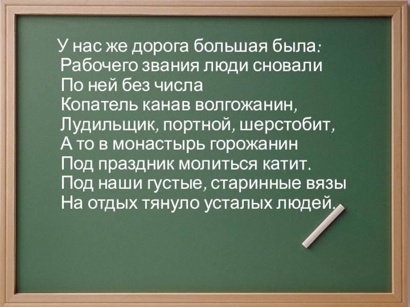 Под густыми, старинными вязами Некрасов играл с деревенскими ребятишками, слушал рассказы прохожих ,,. . . про Киев, про турку, про чудных зверей", делал вместе с ребятами „грибные набеги", ходил купаться на Волгу. Много проникновенных строк посвятил он великой реке. Никогда не забывал поэт о том впечатлении, которое произвели на него бурлаки. В стихотворении „На Волге" он писал: