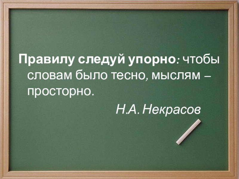 Слайд 5Правилу следуй упорно: чтобы словам было тесно, мыслям – просторно.