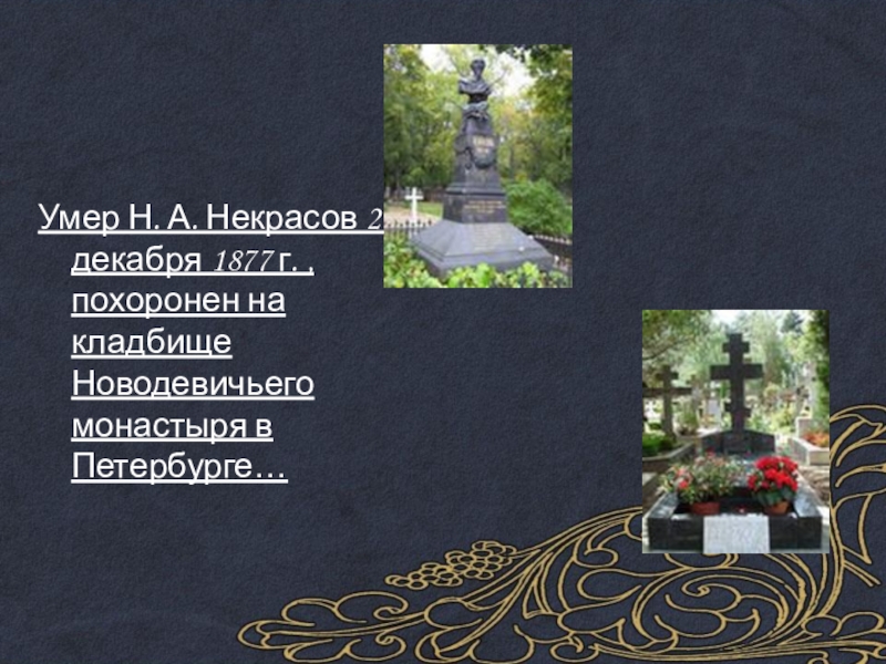 Слайд 8Умер Н. А. Некрасов 27 декабря 1877 г. , похоронен на