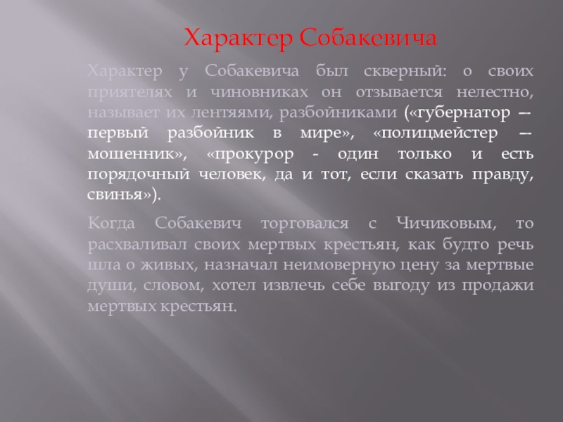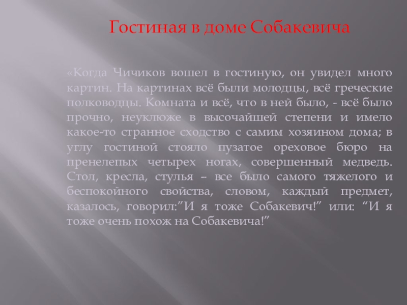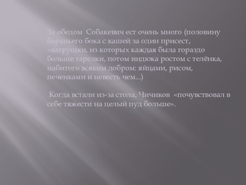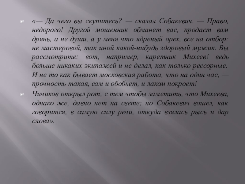 Слайд 120«— Да чего вы скупитесь? — сказал Собакевич. — Право, недорого!