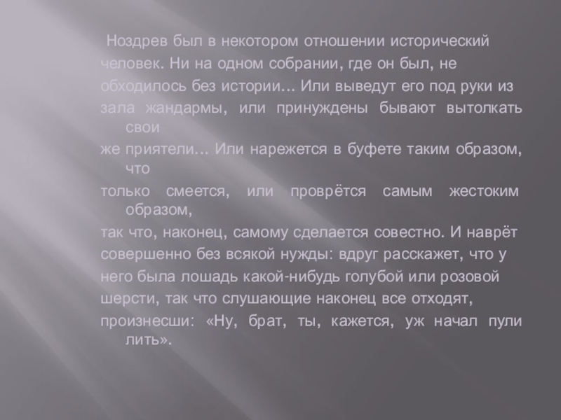он всем известный лгун. Ноздрев уверяет, что продал Чичикову