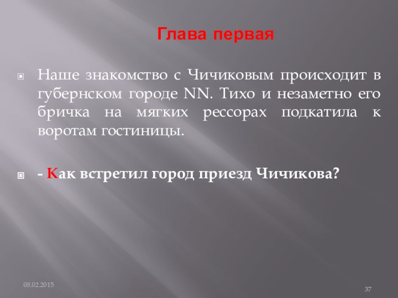 NN. Тихо и незаметно его бричка на мягких рессорах подкатила к воротам гостиницы.