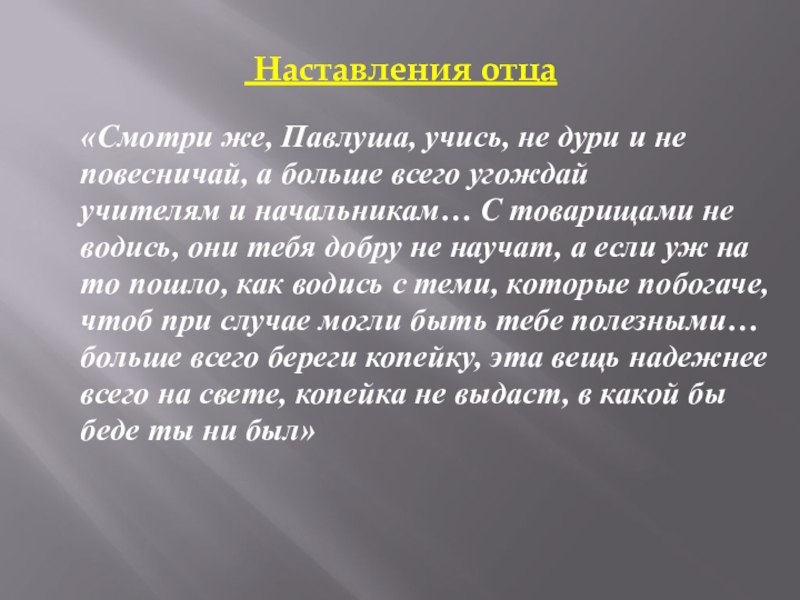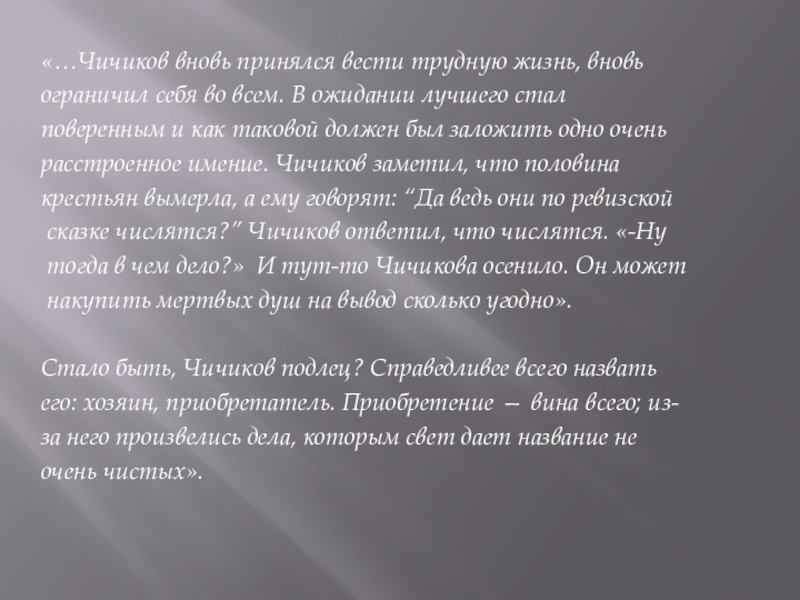 С детства научившийся «копить копейку», Чичиков наделен всеми необходимыми